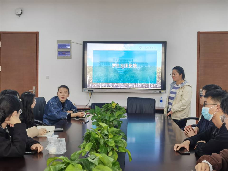 最后,肖丽霞进行总结发言。她针对艺术类社团与学术类社团的特点提出了不同方向的工作指导,指出学术类社团应找准发展定位,将社团特色与竞赛培育相结合,积极鼓励成员参与竞赛,并面向全校吸收优质人才。其次,针对艺术类社团招新人数多,而参与度低的现状,她表示该类社团应积极开展固定的文化活动,培养会员兴趣,做好社团换届与留任工作,更好地传承社团文化。随后,她提出社团联合部应加强与社团的交流,为社团发展提供平台,助力社团进步。