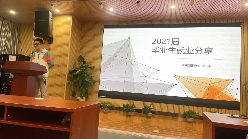 (通讯员:温萧羽)为帮助同学们更好的高效学习,合理规划,我院1801班于2021年4月27日晚九点在华中师范大学信管会议室学术报告厅10001室召开了本学期第一次班会 ,出席人员:班主任吴光梅、全体班级成员。此次班会请到了六位非常优秀的学长学姐,分别是朱丘毅、王潇晗、黄赖华、郑雅静、沈舒悦、赵弟发,他们针对考研/就业相关问题依次进行分享并针对现场同学的疑问进行解答。