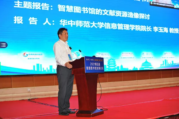 5月13日,2021第五届智慧图书馆发展论坛在武汉开幕。本届论坛设定主题为“新时代大格局智慧图书馆建设‘十四五’开局之问”。华中师范大学信息管理学院院长李玉海教授主持论坛开幕式。
