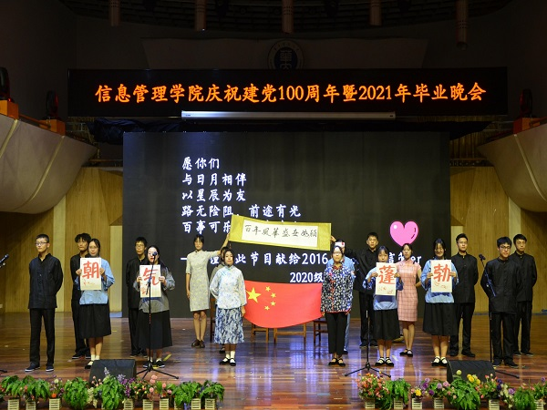 信息管理学院将党史教育学习与毕业晚会典礼创新结合,用师生精心准备的晚会节目献礼建党百年,彰显华师特色,尽显信管风采。这场视听盛会,师生们用丰富多彩的节目回顾百年党史,用热烈昂扬的情感表达为党和祖国建设事业奋斗的青春决心。今天的分别不是终点,带着母校和信管的祝福,毕业学子们将乘风破浪,踏向更广阔的人生舞台,投身到建设祖国的伟大事业中去。