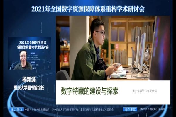 2021年6月18日,由中国科学技术信息研究所、华中师范大学信息管理学院、全国信息与文献标准化技术委员会主办,《数字图书馆论坛》编辑部协办的“2021年全国数字资源保障体系重构学术研讨会”成功召开。会议邀请了全国图书情报界及相关领域的专家学者进行线上+线下的分享交流,线下会场设在我校南湖综合楼10001报告厅,信息管理学院部分师生到场参会,线上直播也得到了全国同仁的积极参与,同时在线人数近万。
