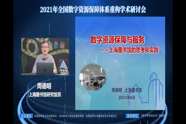 上午最后一场主题报告是周德明研究馆员带来的《数字资源保障与服务——上海图书馆的思考和实践》,分析了信息资源保障面临的新形势,阐述了上海图书馆开展数字信息资源保障的目标、建设策略、方式,并提出了数字资源保障体系重构中应关注的重要方面。