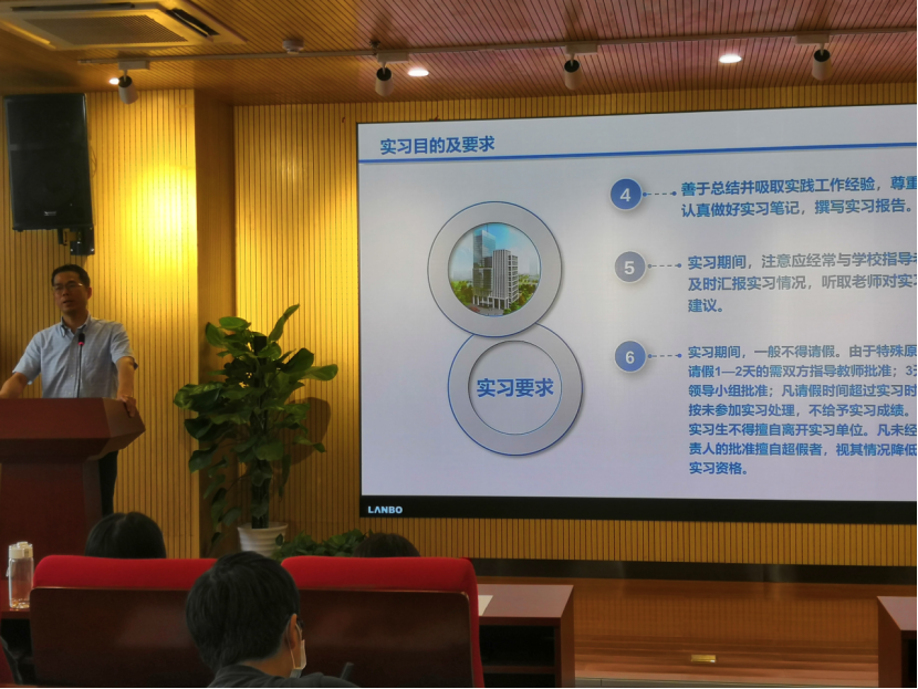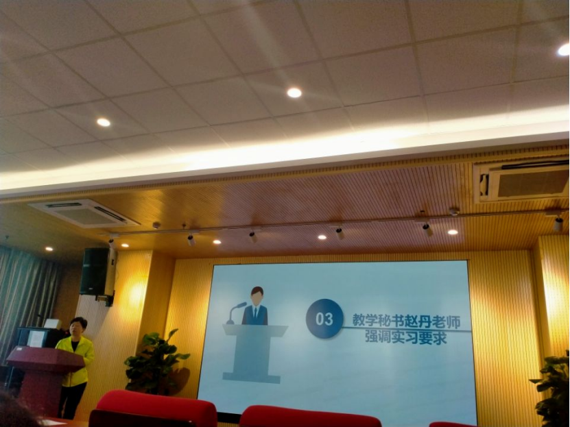 大会的第三项是教学秘书赵丹老师强调实习要求。赵老师将实习的内容、过程、要求、相关文件说明等一系列问题阐明,并将重要文件发在了官方群,供同学们参阅。她重点强调了实习开展的三个时间段、实习结束后需要提交的证明材料,以及其他细节问题,提醒同学们合理安排时间,争取以一段充实的经历来圆满完成本次实习活动。