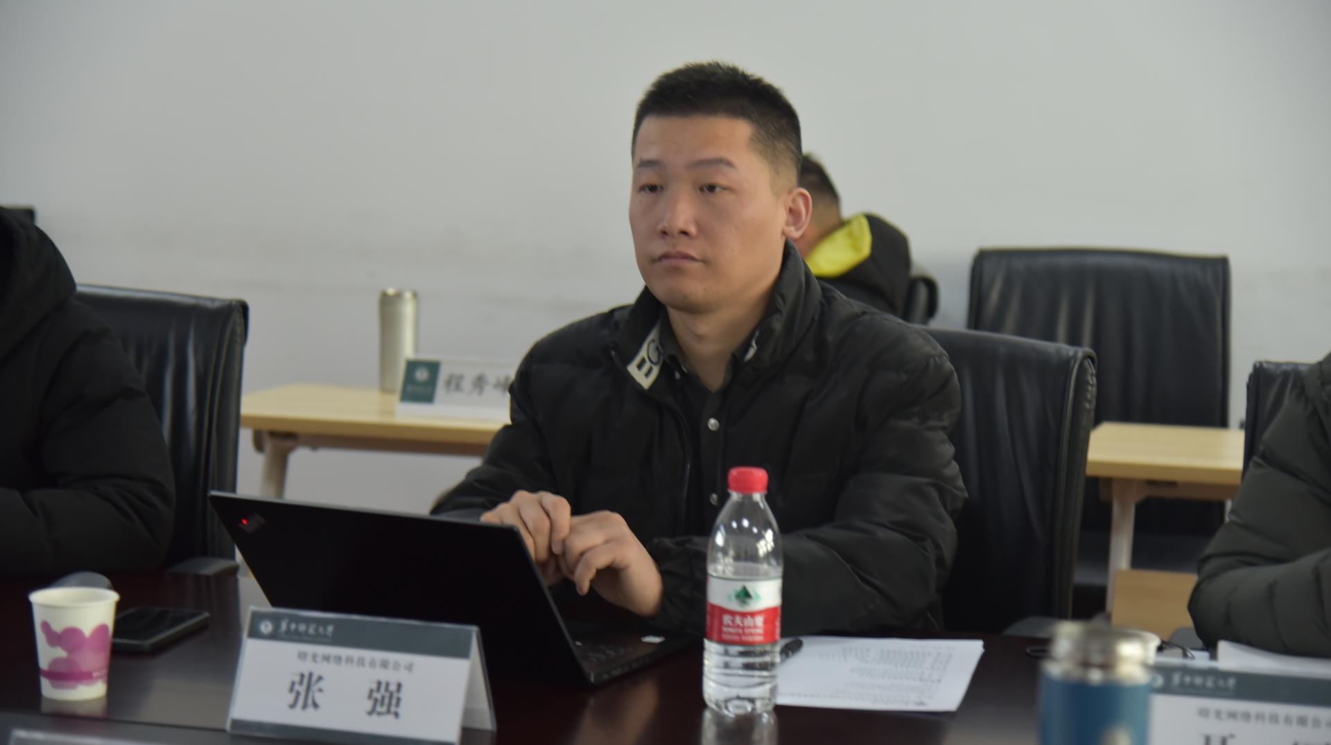 李玉海院长介绍了信管学院发展史、专业分布情况和实验室建设方案等,表达了学院的基本需要和项目宏观需求。曙光网络科技有限公司售前经理张强在发言中简要汇报了主曙光公司的最初定位、科研部分、业务部分、教育领域等重要内容。