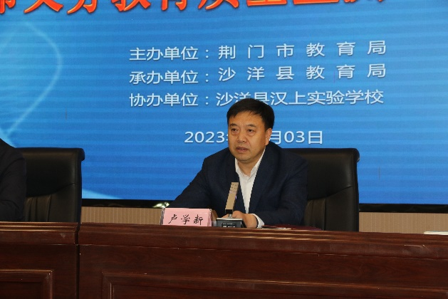 (通讯员 王丽娜)为深入贯彻《深化新时代教育评价改革总体方案》《中国教育现代化2035》《义务教育质量评价指南》等文件要求,认真落实“双减”政策,推动教育部、省教育厅关于加强义务教育质量监测的工作部署。3月3日上午9:30,荆门市义务教育质量监测工作推进会在荆门市沙洋县汉上实验学校顺利举办。此次会议由荆门市教育局副局长张治鹏同志主持,参会人员包括华中师范大学义务教育质量监测项目组专家团队,荆门市教育局领导、市教育局督导办、基教科、教研室、教育质量督导评测中心相关负责人和工作人员,荆门市各县(市、区)教育局主要负责人、督导办、基教科、参测工作人员、教研室学科教研员、各参测学校负责人线上参会。
