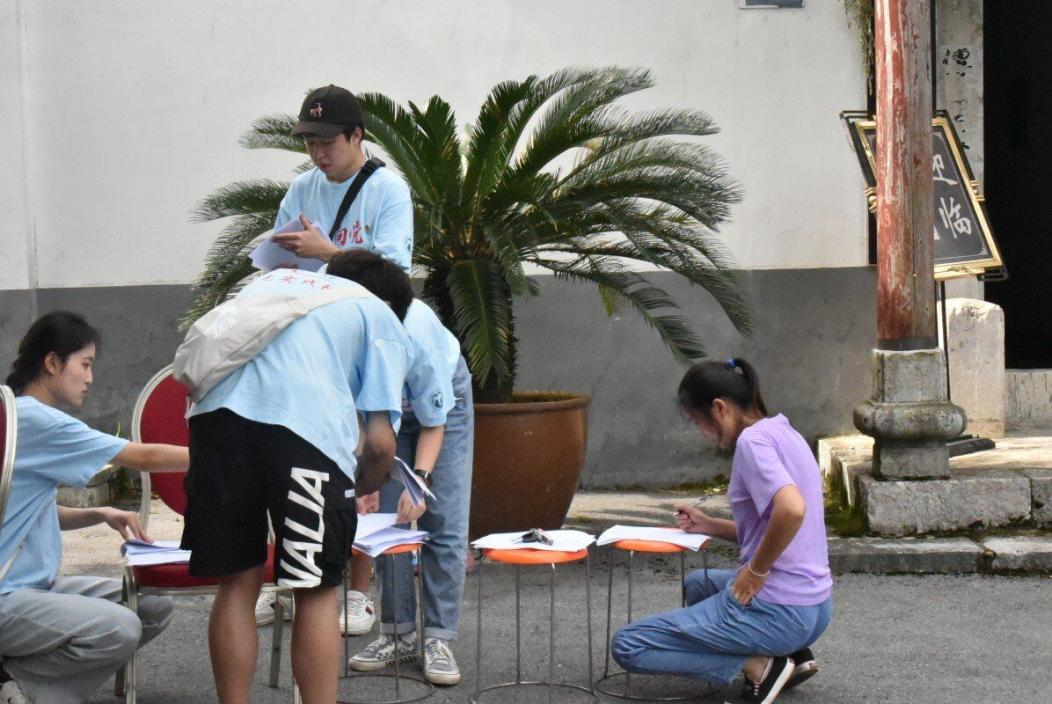 6月28日上午,志愿者们早早来到报名地点。在带队老师王乐的指导下,大家各司其职。搬桌子、摆物资、整理表格……各项环节都有条不紊地开展进行。一张张桌子一字排开,一份份报名表摆放其上,志愿者们耐心等待家长们的到来。
