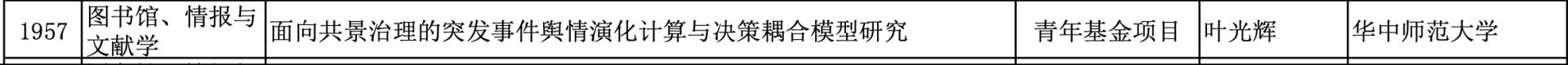 叶光辉,华中师范大学信息管理学院副教授,硕士生导师,大数据管理与应用系系主任,武汉大学信息管理学院博士毕业,中国科学技术情报学会情报研究与咨询专业委员会会员,《The Electronic Library》《图书情报知识》、《信息资源管理学报》、《四川图书馆学报》、《地理与地理信息科学》、《数据分析与知识发现》等期刊通讯评审专家,主要从事信息融合、信息检索、智慧城市建设、数据挖掘、城市数据画像等研究工作,主持国家自科基金2项,教育部社科项目1项,湖北省自科基金2项,中央高校基本科研业务费项目3项,校级教研教改2项,出版专著2部,以第一作者在Journal of Informetrics 、中国图书馆学报、The Electronic Library、情报学报、数据分析与知识发现等重要权威期刊发表论文40余篇,申请软件著作权3项;获得全国高校信息资源管理课程思政案例比赛二等奖、湖北省科技信息成果二等奖、全国图书情报创新案例大赛“优秀案例”奖、华中师范大学第六届本科教学创新奖三等奖等奖项。