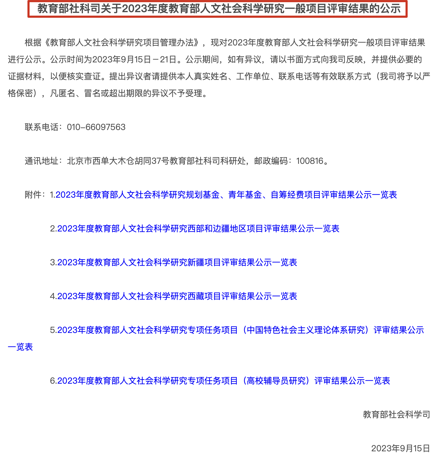 (通讯员 刘述岩) 9月15日,教育部社会科学司公布了 2023 年度教育部人文社会科学研究一般项目评审结果。其中,我院刘百灵老师、叶光辉和吴光梅老师分别获批规划基金项目、青年基金项目立项,谨在此向刘百灵、叶光辉和吴光梅老师表示祝贺!
