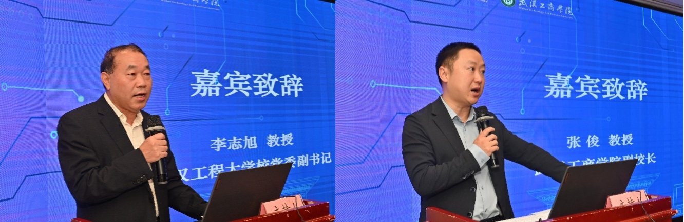 武汉工程大学党委副书记李志旭教授、武汉工商学院副校长张俊教授分别致辞