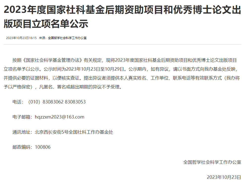 (通讯员 李琳)10月23日,全国哲学社会科学工作办公室公布国家社科基金后期资助项目和优秀博士论文出版项目立项名单。我院叶光辉老师、周正龙老师分别获批国家社科基金后期资助项目。今年,我院已获批国家自然科学基金项目2项;国家社会科学基金项目6项(其中两项为重点项目);教育部人文社会科学研究项目3项。目前,我院在研的国家社科、自科项目已达30余项。