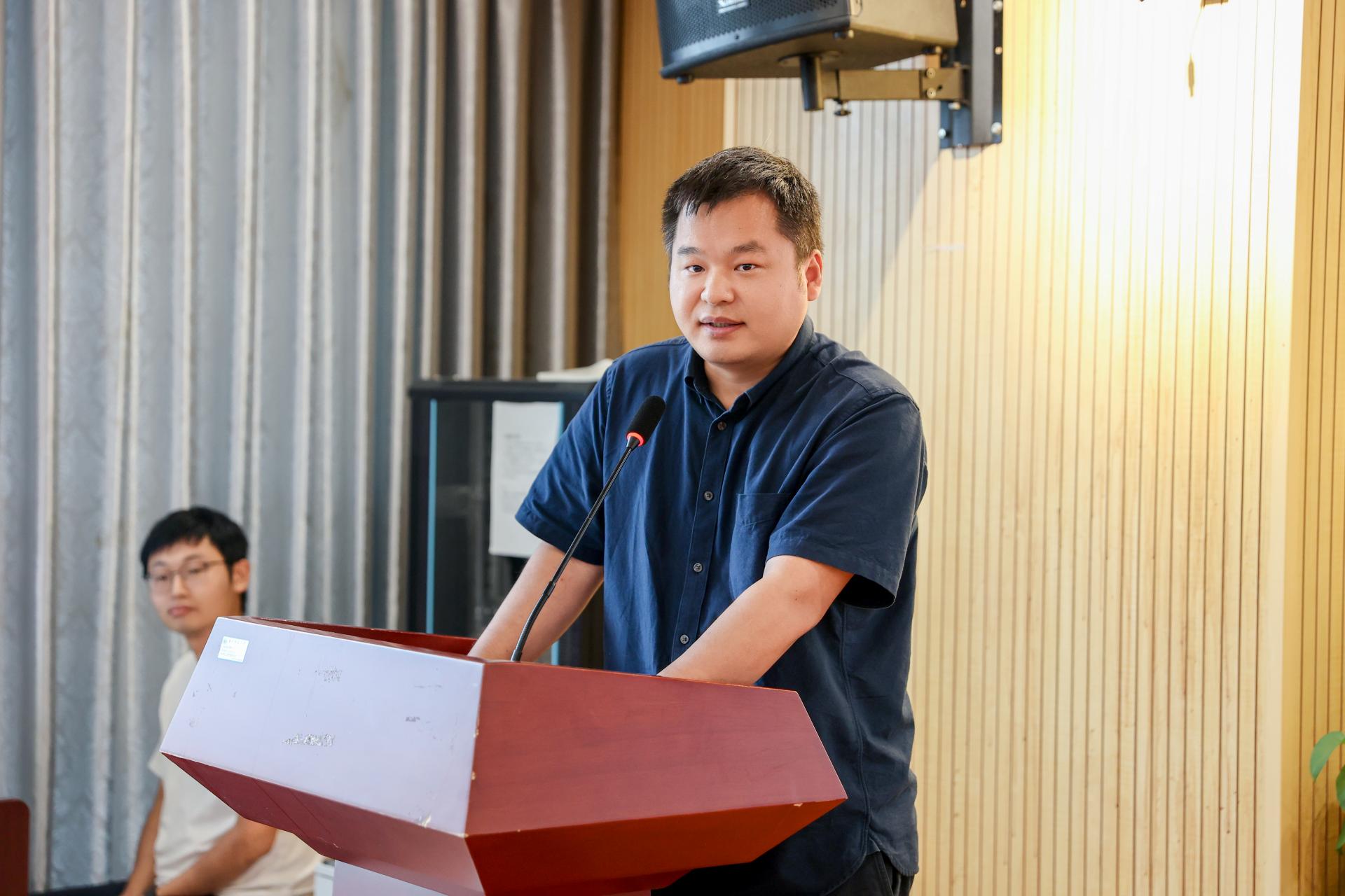 老生代表张进澳发言。他分享了自己在学习科研和生活成长中的感悟,他强调学习科研要埋头苦干、保持初心,同时要加强与老师的交流、与同学的合作。他还提到,新生同学们要向下扎根、向上生长,在成长道路上行稳致远,书写自己精彩篇章。