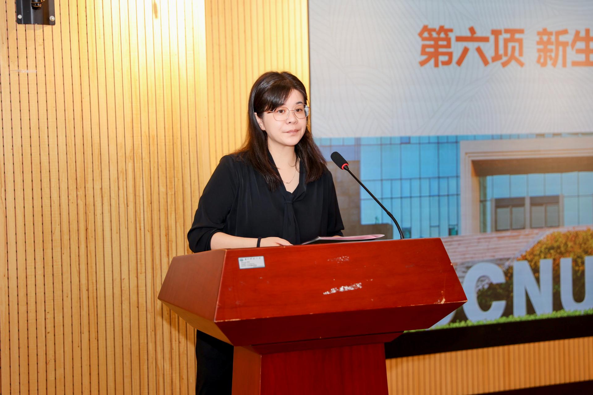 典礼最后,翟姗姗副院长向2024级新生介绍了学院发展、学科建设、人才培养、日常学习生活等内容,让同学们对学院有了更全面更深入的了解,也帮助同学们更快适应学校的学习生活。同时翟院长还强调,在学习上要修身立学,要有学术追求,要有国际视野;在生活中要保持良好的心态,要正确处理导学关系,要促进团队合作。