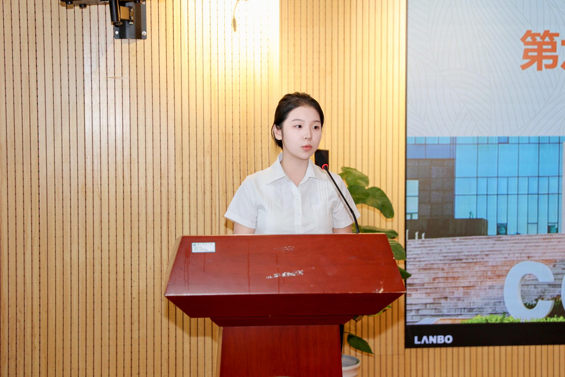 新生代表范毅萌发言。她对今后的学习生活进行了展望,她表示,面对未来更深入的学术研究、更严谨的学术训练、更广阔的学术视野,要直面挑战、抓住机遇,期待与大家共同探索和攀登科学高峰。范同学提到,要秉承院训精神,以坚定的信念、务实的行动,投入到未来的学习生活中,并强调大家要努力培养和发扬勇于担当的精神,运用专业能力以实际行动践行学以报国的理念,成为具有现代信息意识、理论素养、管理技能和国际视野的高素质、复合型人才。