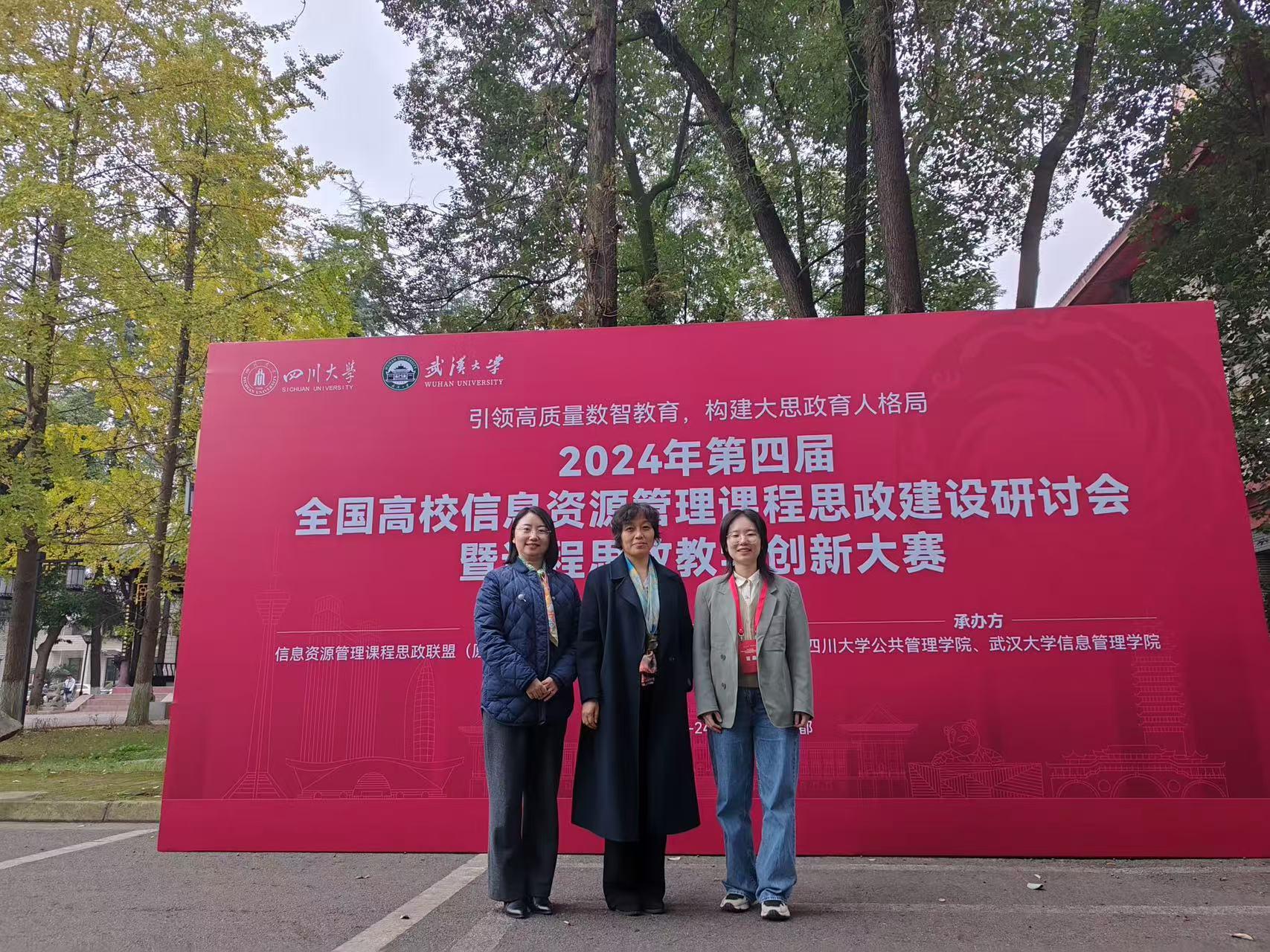 (通讯员 范毅萌)11月22日至24日由信息资源管理课程思政联盟(原图书情报与档案管理课程思政联盟)主办,四川大学公共管理学院、武汉大学信息管理学院联合承办的2024年度第四届全国高校信息资源管理课程思政建设研讨会暨课程思政教学创新大赛于成都举办。华中师范大学信息管理课程思政教学研究示范中心主任张自然老师带队赴成都参赛,刘百灵教授荣获课程思政说课比赛“特等奖”,董晶老师荣获课程思政案例设计比赛“一等奖”。在此,谨向各位老师表示热烈祝贺。