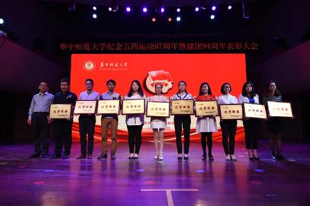 (记者 刘磊)2016年5 月4日下午15:00,华中师范大学“纪念五四运动97周年暨建团94周年”表彰大会在我校音乐厅举行。信息管理学院团委和研究生会分别获得了“优秀团委”、“标兵研究生会”的光荣称号。