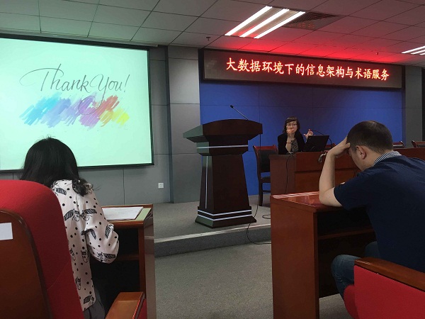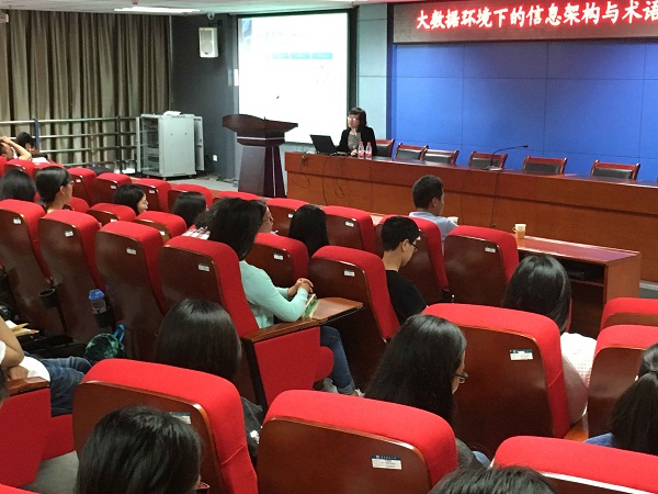 信息管理学院讯(通讯员 聂鑫磊) 5月5日下午,生物信息学博士洪漪女士应邀来我校图书馆三楼学术报告厅作了一场题为“大数据环境下的信息架构与术语服务”的讲座。会议由图书馆馆长我院特聘教授李玉海及主持,各级博士﹑硕士研究生和本科同学参加了讲座。