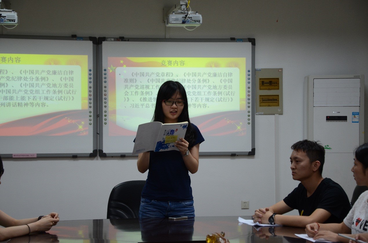 此次知识竞赛是根据中央、省委,省委教育工委的部署精神,按照校党委“两学一做”学习教育实施方案安排而开展的活动。竞赛题目涵盖《中国共产党章程》、《中国共产党廉洁自律准则》、《中国共产党纪律处分条例》等党内法规及习近平总书记系列重要讲话、十八大等相关内容。竞赛形式为两只队伍抢答,未在规定时间内抢答的题目可由观众来答题。
