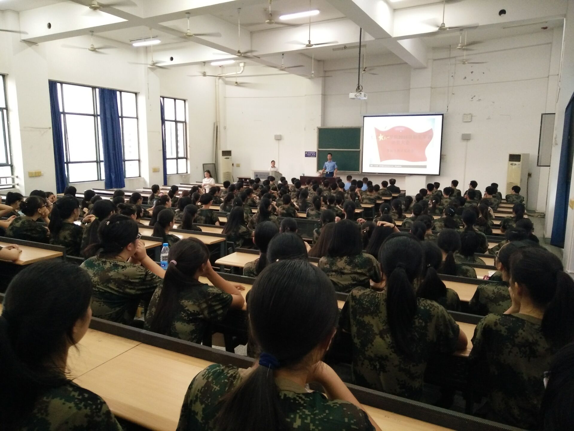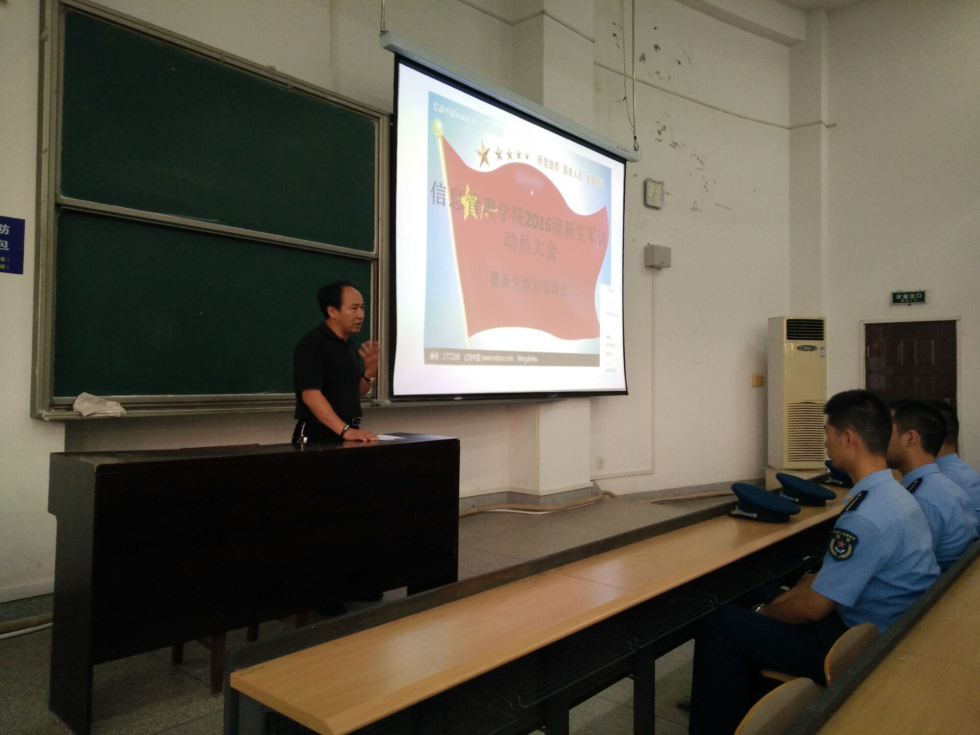 9月2日18:00,信息管理学院在9201教室举办了2016级新生军训动员大会。学院党委书记刘宝卿、2016级辅导员穆帆、负责军训的三位教官以及全体2016级新生参加了此次大会。