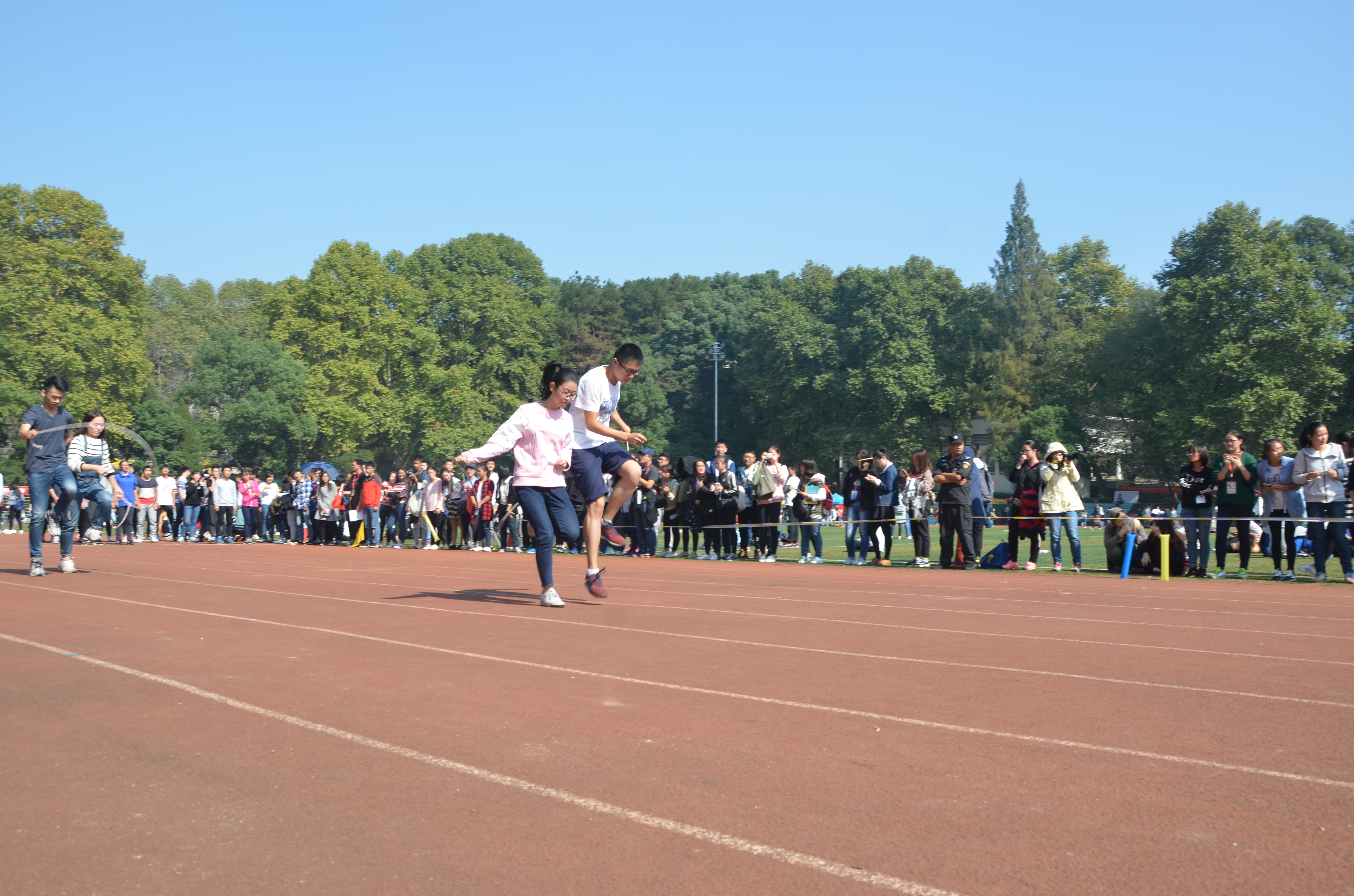 定点投篮的乐趣只属于小众,而中午12点举行的跳绳接力就是大众的狂欢了。学生将100米的赛道团团围住,全场的目光都集中于此。将队伍分成两边,男女搭配一组组合跳绳,最先完成则胜利。比赛开始,四个学院的组合同时跳绳,各方差距不大,相互僵持。信管学院第一组马耀雄吴彬和按照平时训练的速度稳步进行,中间因为气氛紧张步伐出现失误停断一次,后又快速调整赶上其他院系。城环等其他院系的组合在赛场上不断加速,男女不断飞奔,速度加快,但与此同时失误率增高,在赛场上频频出现中断。信管学院接下来曾德勤和戴怡婧组合、陈思伟和张亚男组合、兰栋枢和吴晓慧组合以及宓嘉祥和袁静佳组合稳定发挥,过程顺畅。相比于其他院系,信管学院在速度上没有优势,但凭借稳定的发挥,较少的失误率在后程不断反超并保持优势,最终夺得小组第二的优异成绩,为信管争光添彩。