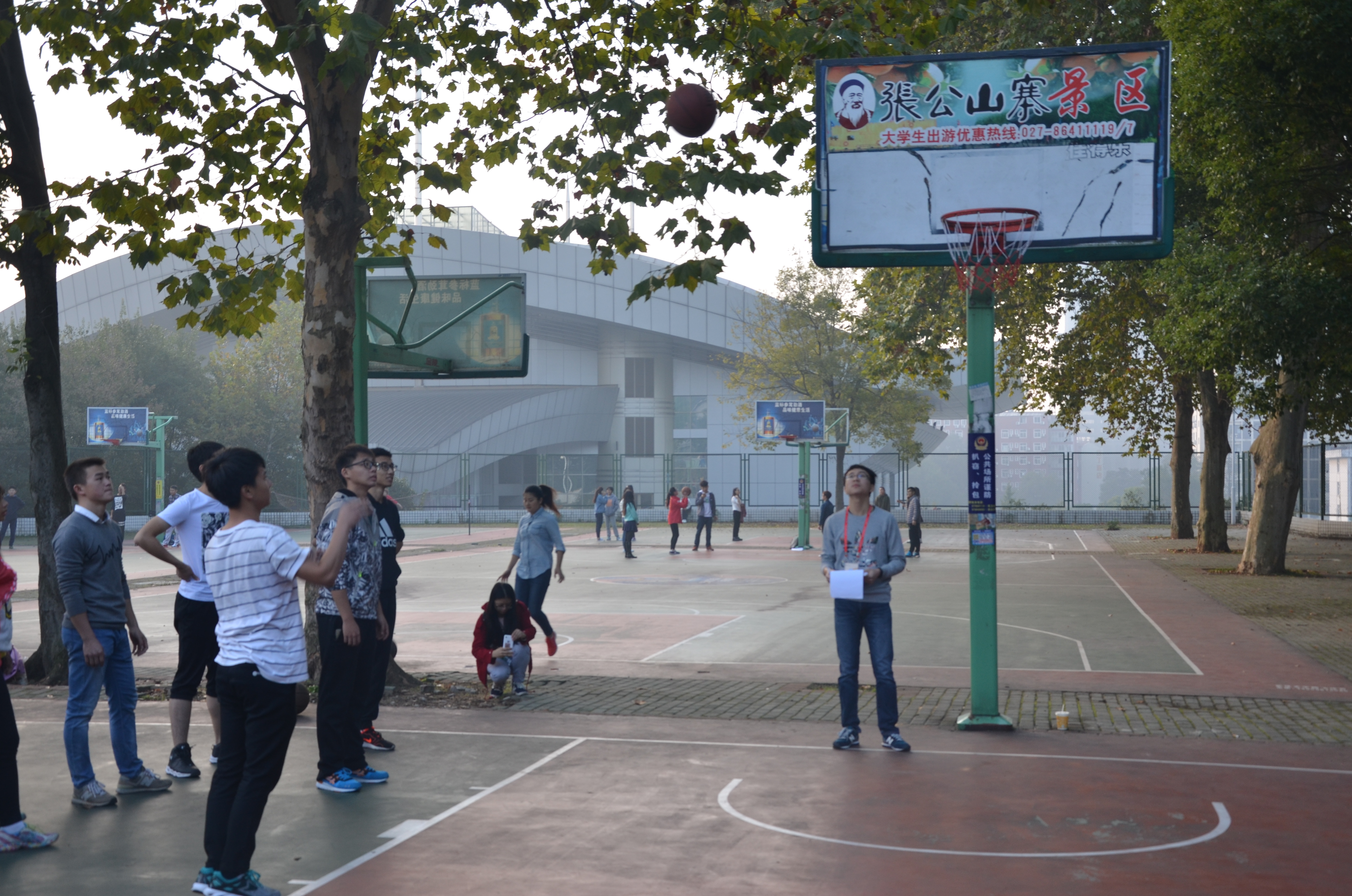文学院比赛结束轮到了信管学院。来自信管学院的五男五女围绕内线区站立。先是男生投篮,第一个投篮的是陈思伟,按照训练姿势把球投出,可或许是第一个上场的压力使得出手微快,球在球框上绕圈行走却最终遗憾弹出。在场的信管学院学生并没有叹气嘘声,而是拍掌鼓励,陈思伟也迅速调整状态,最终以5球4进的不错成绩开了个好头。陈思伟积极与其他人分享经验,最终于啸天、陈欢、黄鹏、彭广都以极高的瞄准度完成比赛。尤其黄鹏更是以百发百中的精准度赢得了大家的掌声。接下来就是女生投篮,巾帼不让须眉。张亚男、邹馨洁熟练地拍球然后一系列连贯最终都有5投3进的不错成绩。南晓倩、李轩、娄玉云都按照规定动作投篮,但因为力气稍欠所以命中率不高,但都有进球。所有运动员都以优异的成绩完成了比赛。