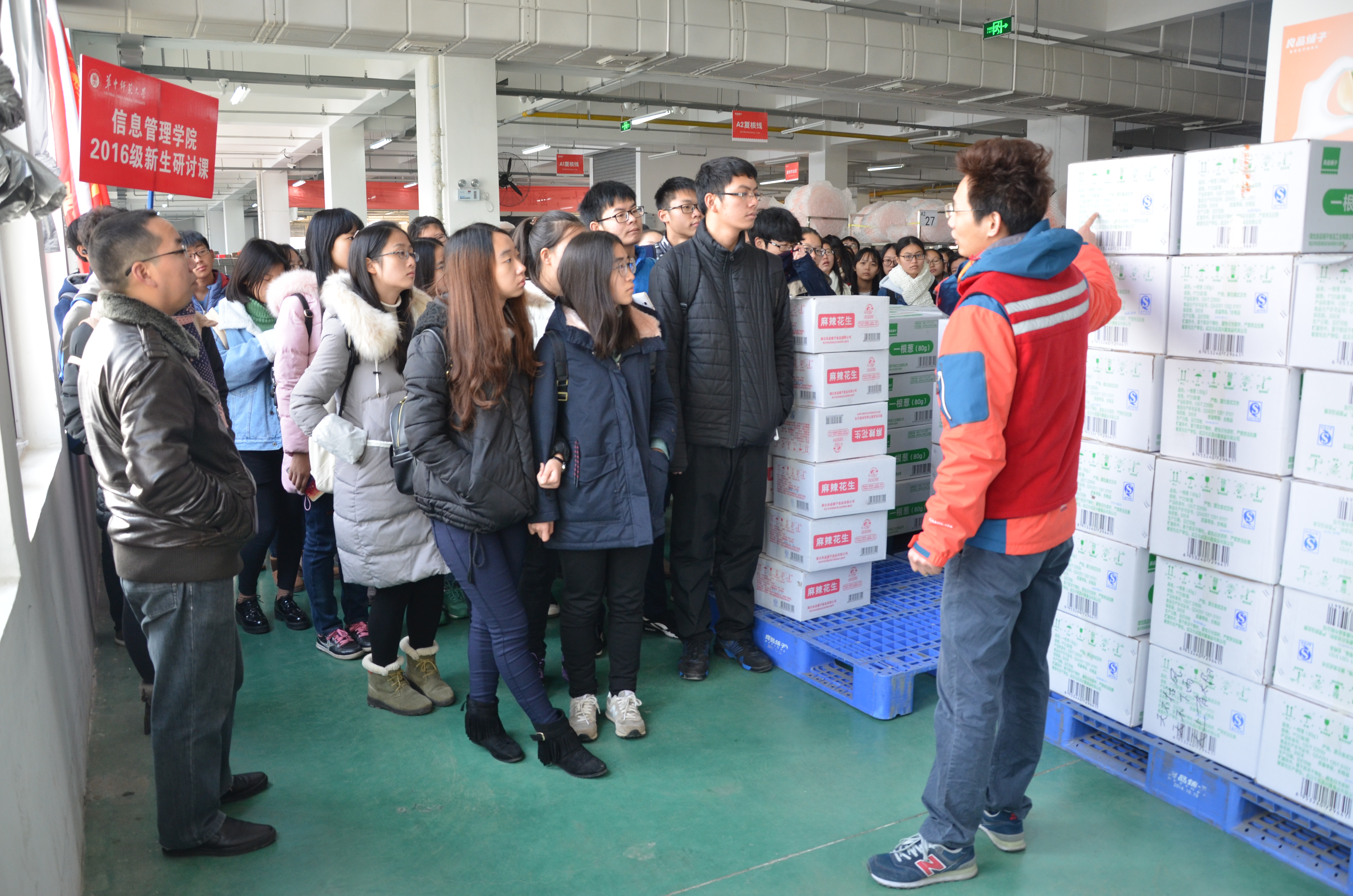 (通讯员 杨丽嫆 王妞妞 摄影 兰栋枢)为帮助16级新生更好的了解电子商务专业,12月30日上午,信息管理学院利用新生研讨课开展了第二批企业实地参观学习实践。本次活动目的地是良品铺子旗下的物流分装公司,由谭春晖老师带队指导。