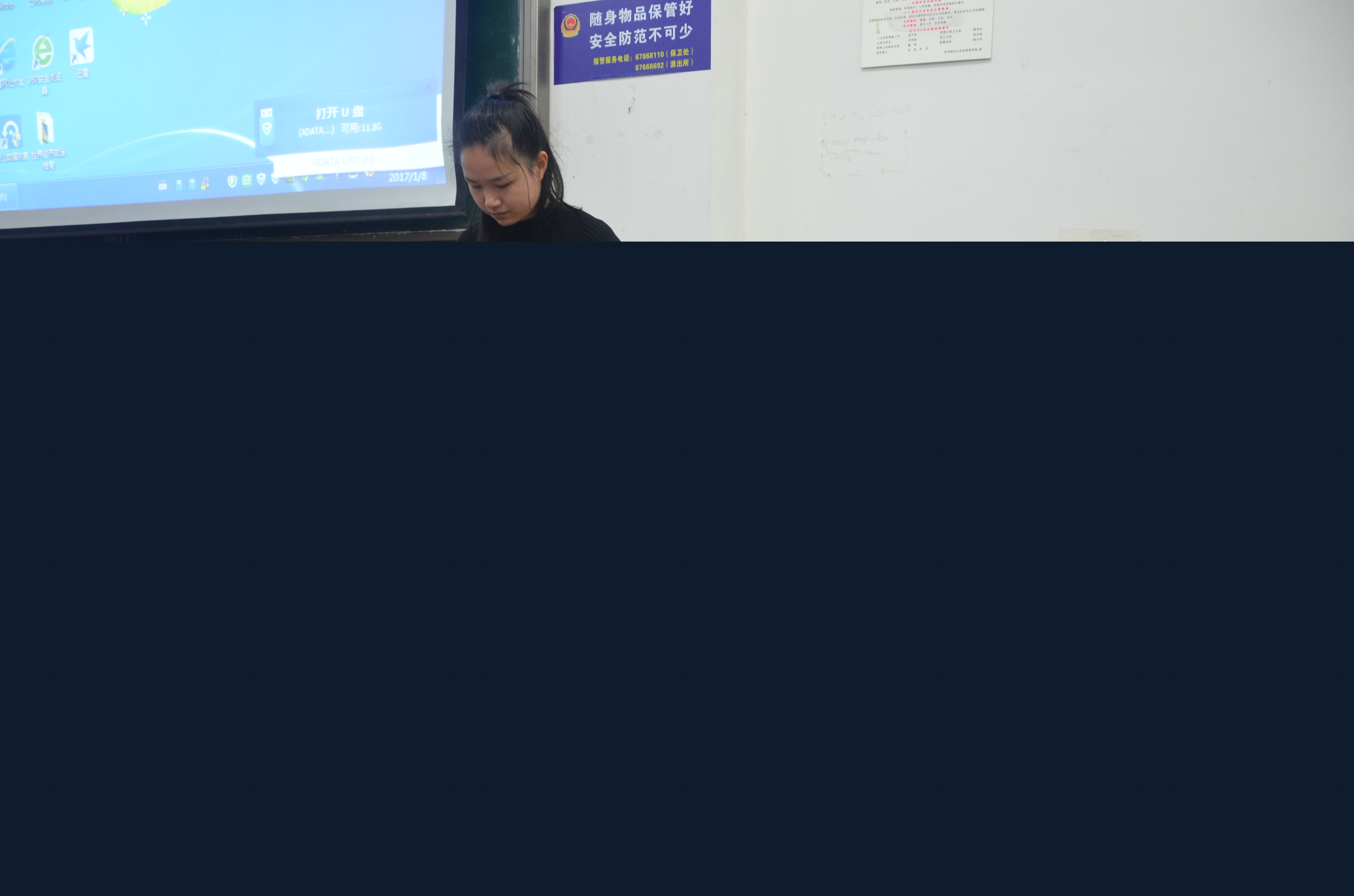 (通讯员周琼宇 摄影兰栋枢)在2016年12月29日以及2017年1月8日的两次晚点名上,信息管理学院举办了16级转专业同学的告别表演。在欢笑和泪水中,信息管理学院16级同学们向下学期将要转走的同学们表达了自己的不舍之情,并送出了自己的美好祝福。