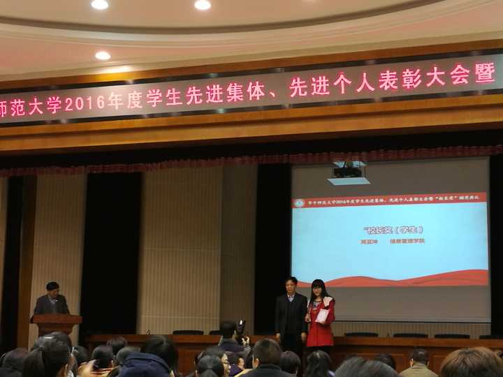 (通讯员蒋可鸣)华中师范大学“校长奖”(学生)于2016年设立,是为褒奖恪守4华师校训,弘扬华师精神,综合素质全面,在学术研究、创新创业、社会公益、文体艺术等某一方面事迹突出的学生先进个人(含全日制本科生、研究生和留学生个人)。“校长奖”(学生)奖励金额为1万元/人,每年奖励10名优秀学生,评选坚持“优中选优,宁缺毋滥”的原则。我院2013级本科生苑亚坤斩获首届“校长奖”,并于2017年1月9日下午在科学会堂进行表彰。