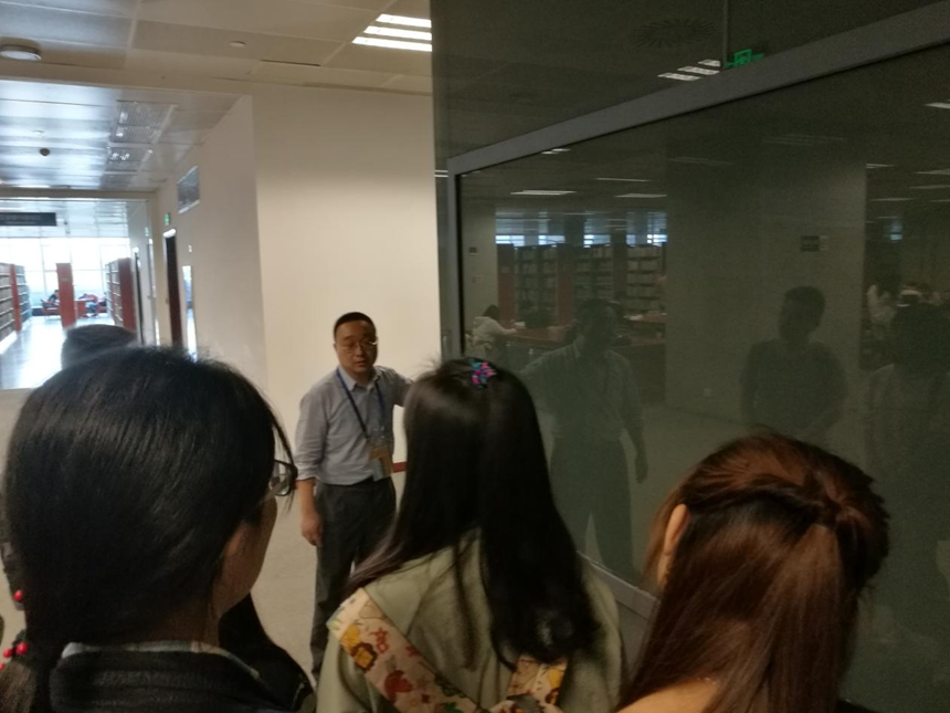 理论知识学习完后,省图的讲解员带领同学们逐楼进行参观。讲解员详细介绍了图书馆的馆藏资源和基本功能,包括相关特色资源的使用、借阅证的办理等。