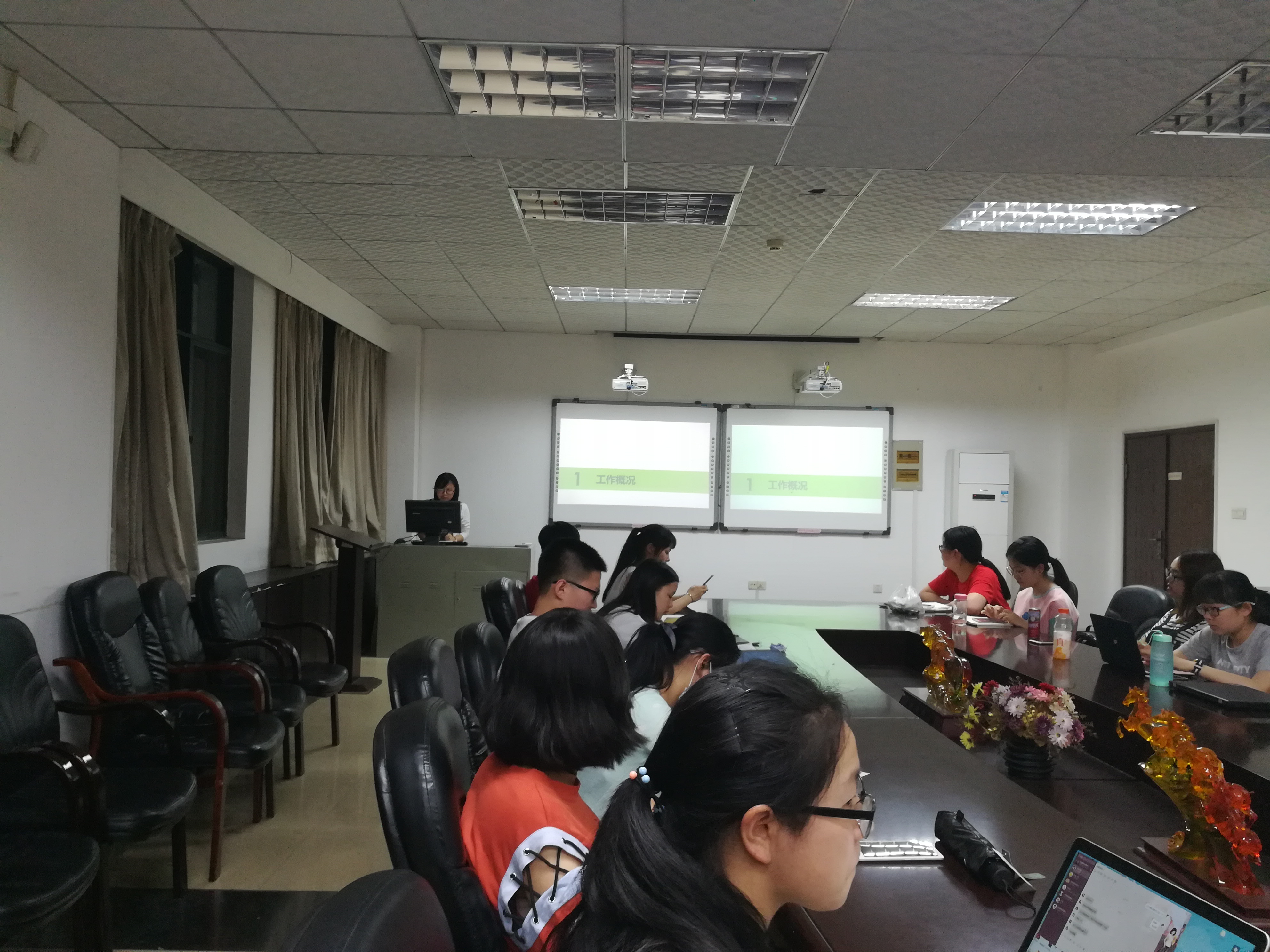 2017年5月14日20:00整,第五届信息管理学院团委学生会述职大会在九号楼918会议室圆满举办。信息管理学院团委书记蒋可鸣,团委副书记严婷婷,第五届院学生会主席周静虹,副主席王亦越、何杨煜琪、宋吉以及团委、学生会各部门部长、副部长出席了此次会议。会议由第五届学生会主席周静虹主持。