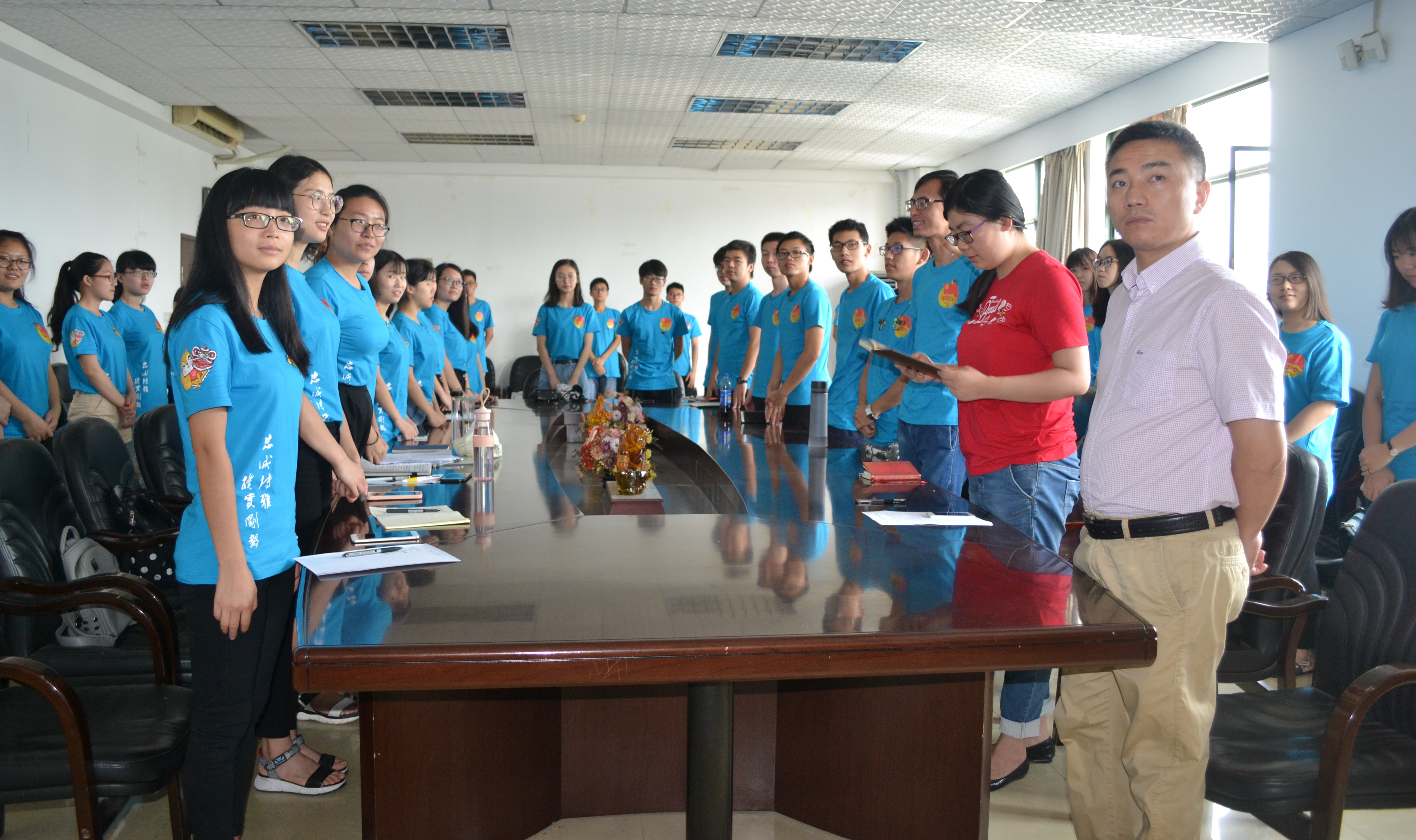 会议最后一项,由杨青松老师宣布暑期社会实践活动开始接着蒋可鸣老师给三个实践队授予暑期实践队队旗。