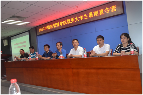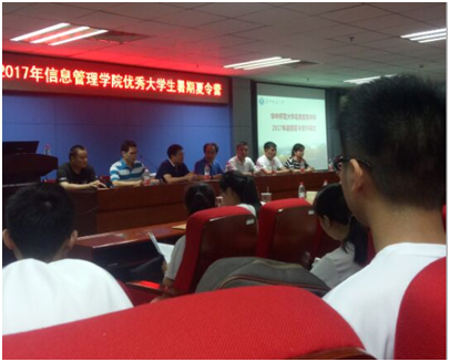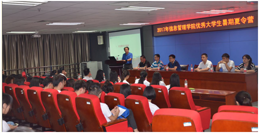 7月8日晚上,我院2017年优秀大学生暑期夏令营开营仪式在图书馆三楼会议室隆重举行。院党委书记刘宝卿、副书记杨青松、副院长卢新元、信息管理与信息系统系系主任胡潜,以及青年教师程秀峰、刘向、翟姗姗、池毛毛、叶光辉等参加了开营仪式。开营仪式由卢新元主持。