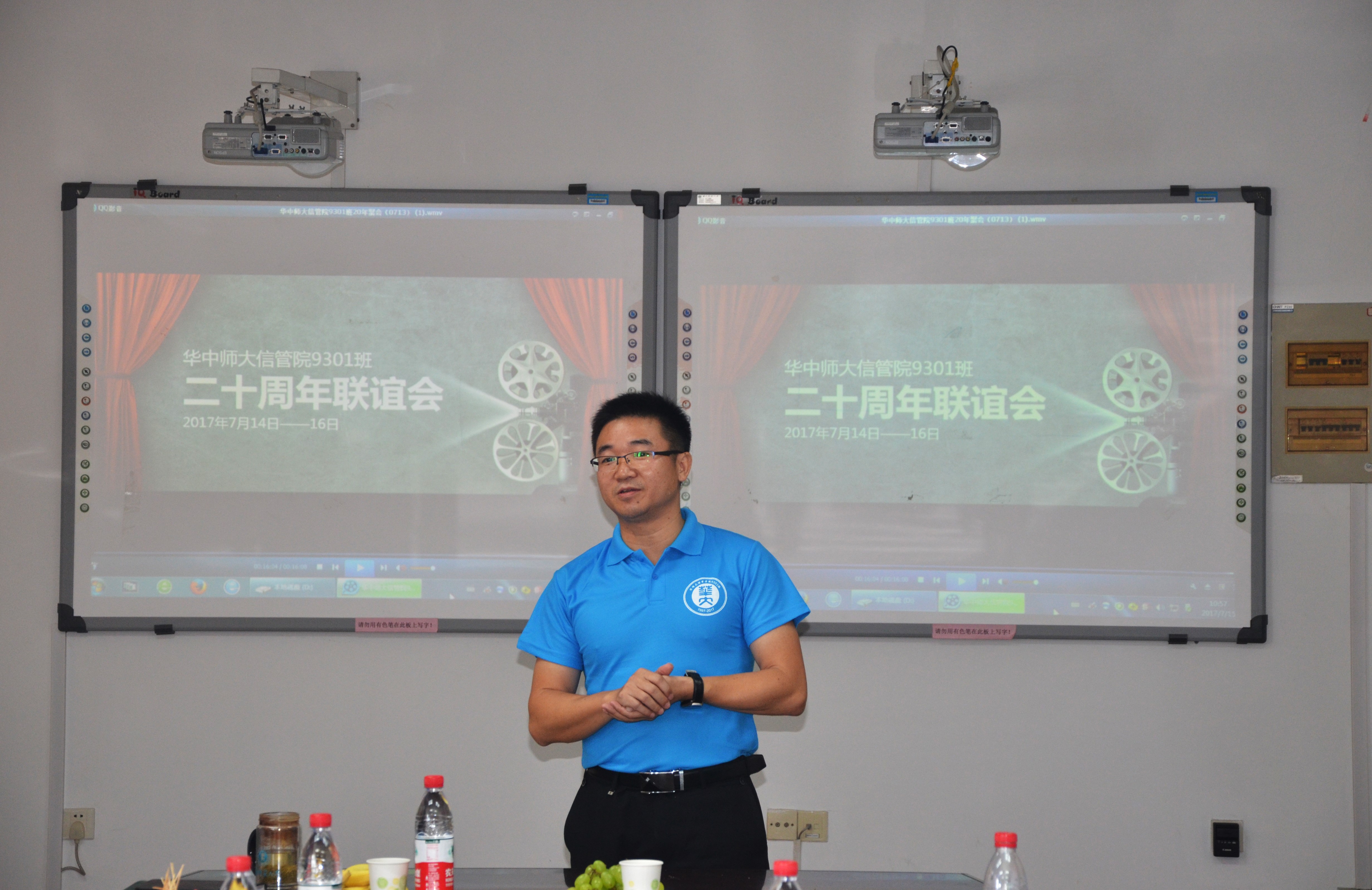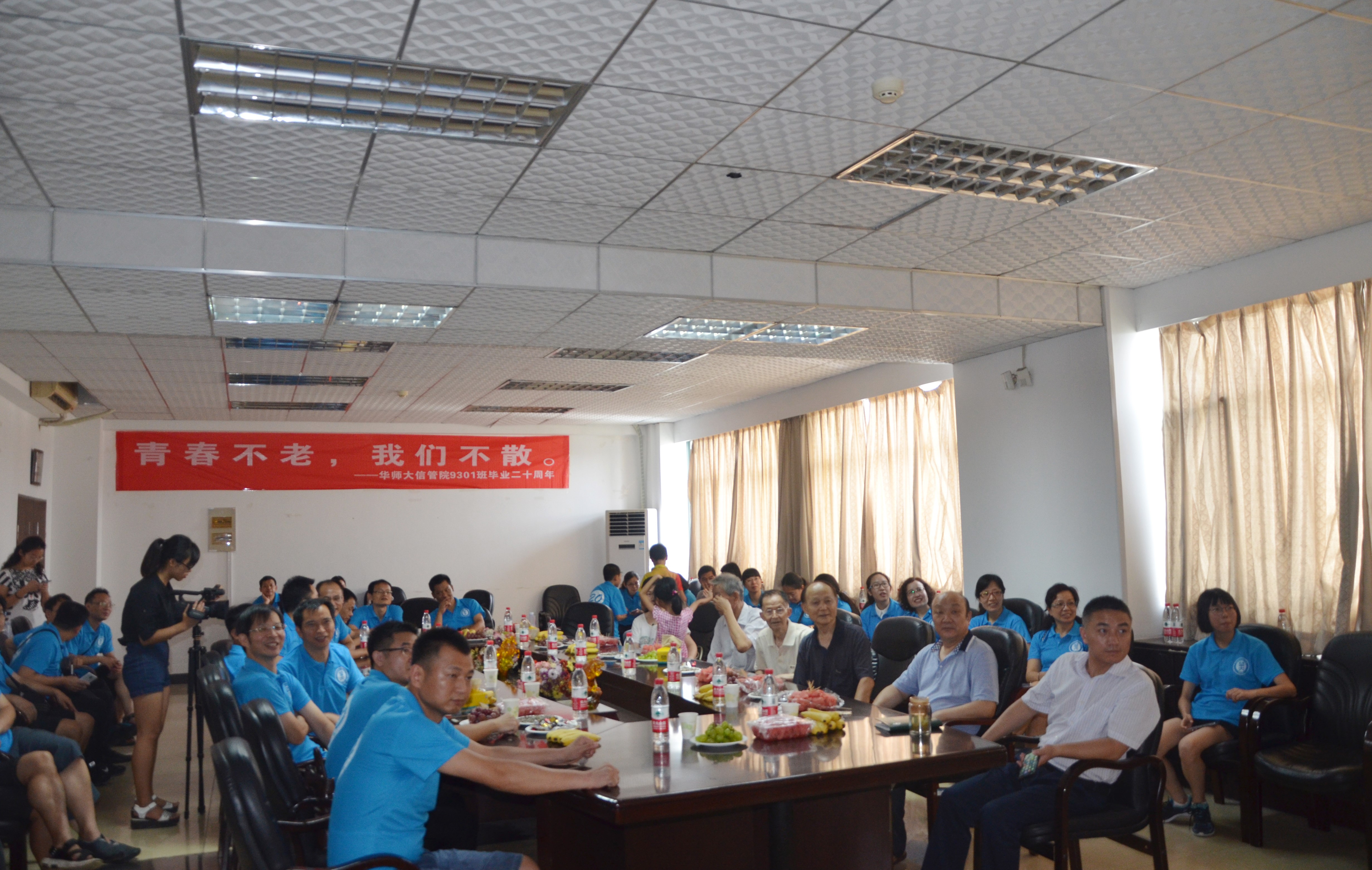 (通讯员:童彤 摄影:李超、童彤) 7月15日,信息管理学院93级毕业生联谊座谈会在918会议室顺利召开。由于副校长夏立新、院党委书记刘宝卿在外学习无法出席,座谈会由党委副书记杨青松主持,学院离退休教师代表皮启铎、况能富、刘大桥、叶孔森、学院在职教师代表夏南强、程蕾、校友干事李超参加座谈会,与9301班的毕业生畅谈学科现状、分享人生感悟。