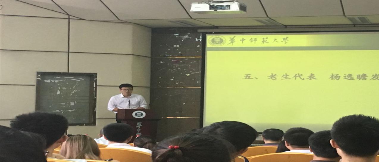 接着,老生杨逸瞻向新一批的研究生学弟学妹们分享了他的学习生活,在做人和学习两个方面为新生们给出了良好的建--“学会感恩,永怀期盼”。希望学弟学妹们能在华师度过充实美好的学习生活,遇见更好的自己。