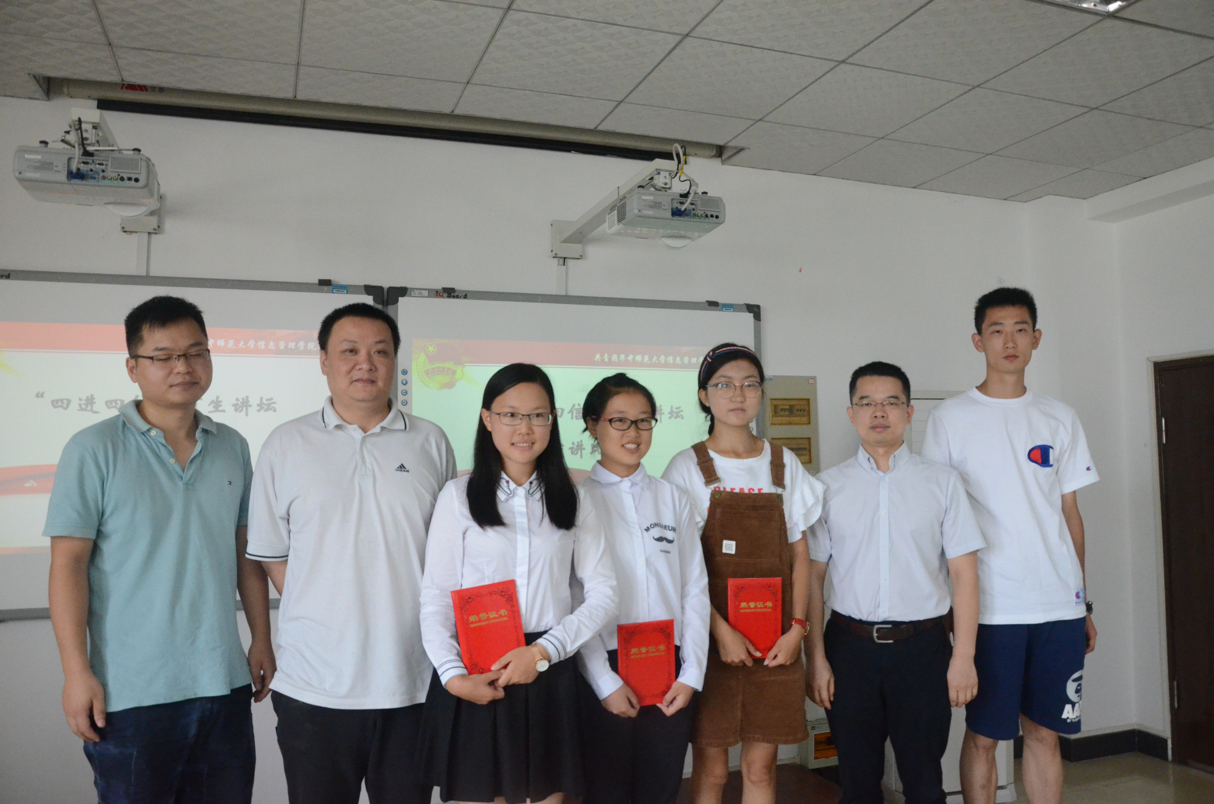 本次演讲比赛以评委现场打分的方式,最终产生一等奖一名,杨镜琦同学;二等奖一名,陈茗同学;三等奖一名,金静雅同学。信息管理学院为获奖选手颁发了荣誉证书,与获奖选手合影留念并表示了热烈的祝贺。