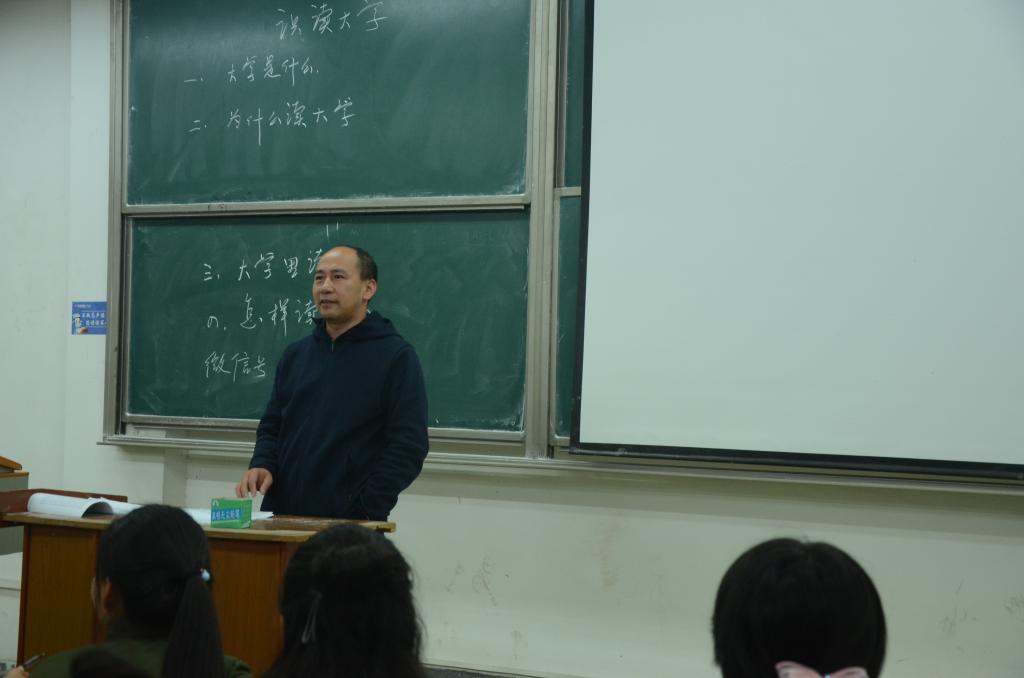 刘宝卿书记从自己的工作经历引入,正式开始了讲座。刘书记表示,此次讲座主要为大家做思想上的引领。讲座以“大学是什么”“为什么读大学”“大学里读什么”“怎样读大学”四部分进行。