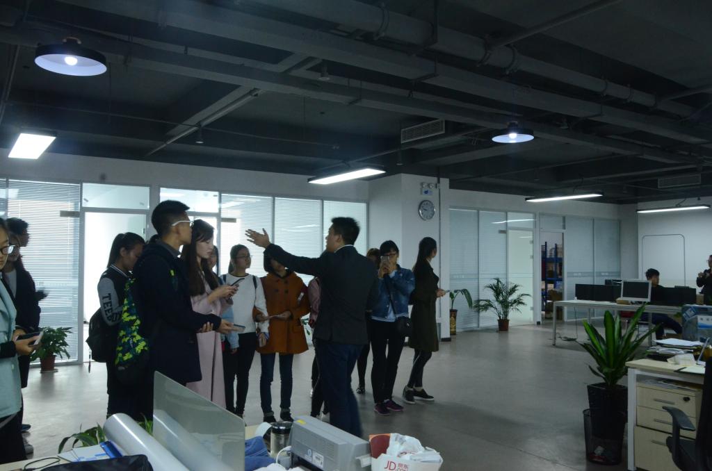 接着,同学们来到了25楼武汉利楚商务。一进入办公区一则标语尤其醒目“九月目标猛冲刺,十月丽江找艳遇”,对此,渠道总监陈超表示这是他们对自己的高要求,也是公司奖励政策的真实写照。戏谑的标语表现利楚独有的企业文化,也是整个电子商务行业欣欣向荣的缩影。此后,同学们还继续参观了22楼、21楼及17楼。