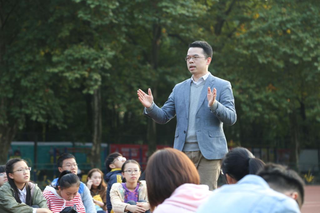 下午四点左右,1603班和1702班班委到达佑铭体育场,开始进行现场布置。秋日的阳光温暖舒适,同学们怀着期待的心情准时到达现场,1702班的班主任刘向老师也应邀来到现场,和同学们亲切交谈。下午四点半,1603班团支书李思虹与1702班团支书张学偲共同宣布,团日活动正式开始。