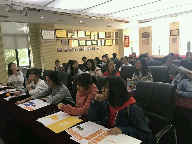 在对公司全貌有所了解后,全体同学返回一楼会议室,1701班所有同学井然有序的入座,认真阅读公司给的出宣传手册,通过手册的介绍进一步加深了对公司业务及运营机制的认识。接下来公司总经理江益民上台,为同学们展开了专题讲解,分析了当今时代背景,引导同学们思考在大数据的时代我们可以做些什么,我们该怎么做,并表达了对同学们的殷切希望。