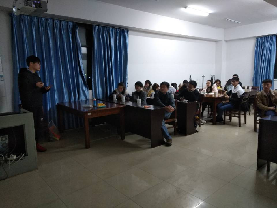 (通讯员:田建辉 摄影:田建辉)2017年12月3日晚8点,信息管理学院1603班于9号楼9楼阅览室举办了学习分享活动暨本学期第二次团日活动。本次活动由团支书李思虹主持,班主任胡潜老师和2014级2015级共四位学长学姐出席了会议。本次分享会旨在通过老师、学长学姐以及同学的分享,让同学们明确专业方向,帮助同学们更好的学习。