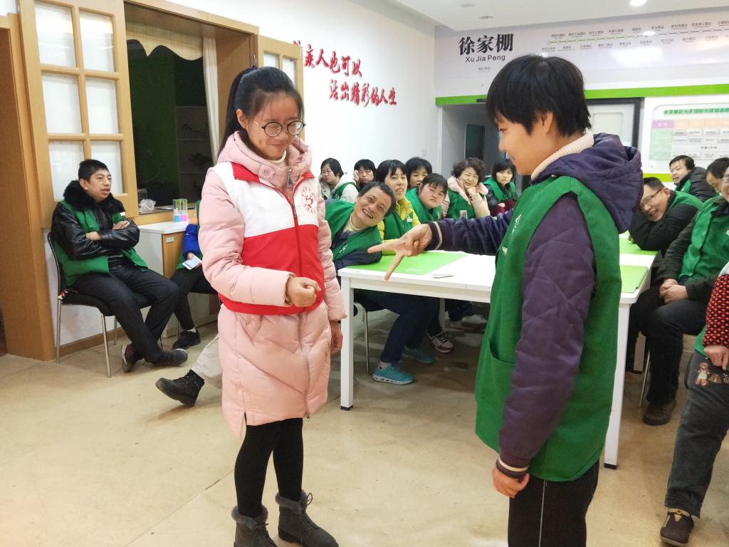 最后,志愿者们还和服务对象们共同做了一个“萝卜蹲”的趣味游戏,场面十分热闹。最后实在难分胜负,只好以“猜拳”定输赢。获胜的残疾人朋友还得到了志愿者们精心准备的“黄鹤楼”和“玫瑰花”折纸。
