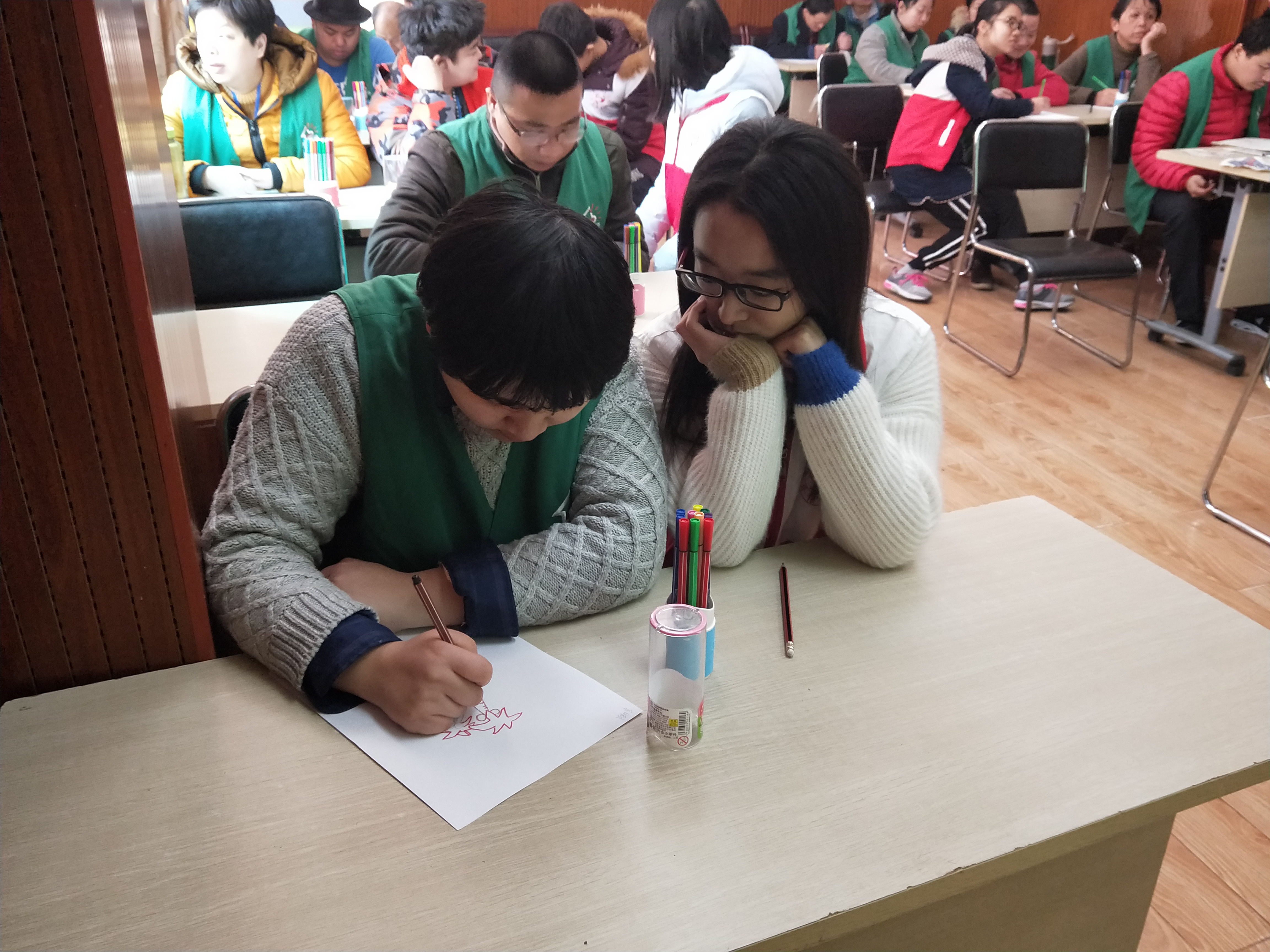 接下来,是简笔画教学。志愿者们给残疾人朋友们分发了绘画用具,就教他们画了椰子树等关于植树节的简笔画。每位志愿者陪伴在一位残疾人朋友身边,耐心地指导着他们的绘画作品。大家都学的很快,还自己给图画上了色。他们或许并没有高深的绘画功底,但是他们的认真让人动容。