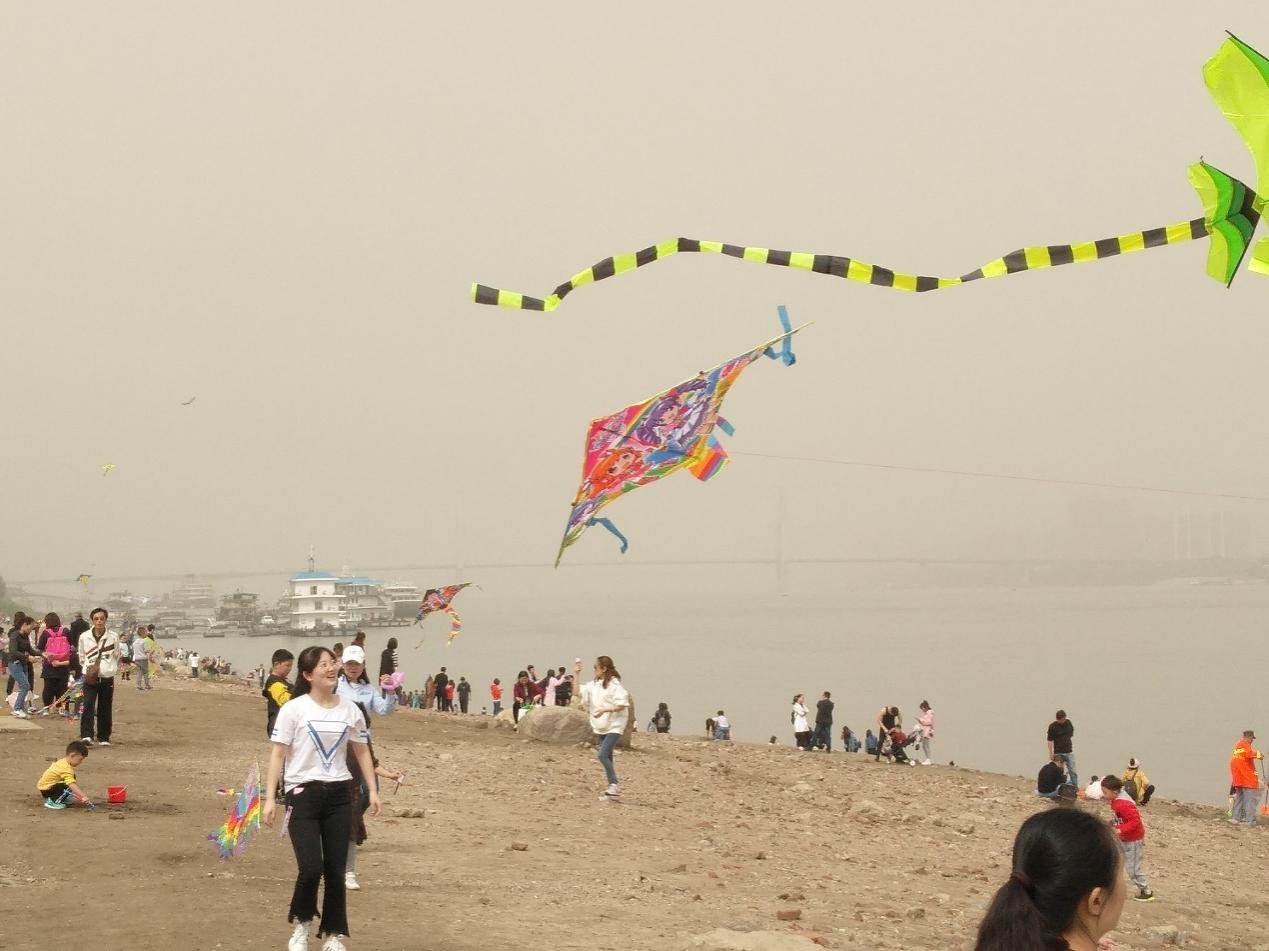 放风筝阶段结束后,开始进入游戏阶段。同学们分成两组进行跳房子和无敌风火轮比赛。前者注重同学们的身体协调能力,后者则更考验支部成员之间的密切配合。跳房子游戏中李思虹表现出色,取得了较好的战绩。无敌风火轮比赛中,虽然有多次踩破报纸的情况出现,但是两队还是稳定抵达了终点。支部同学密切合作、相互帮助,完成了比赛,同学们都乐在其中。放风筝和游戏环节结束后,同学们开始自由在江滩上观光游玩。