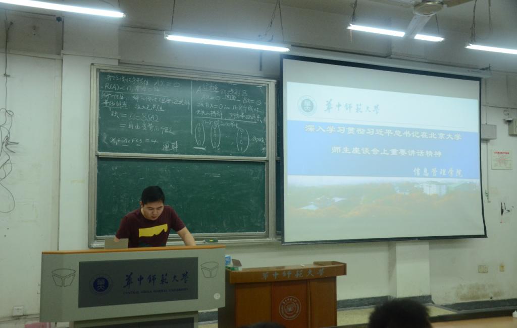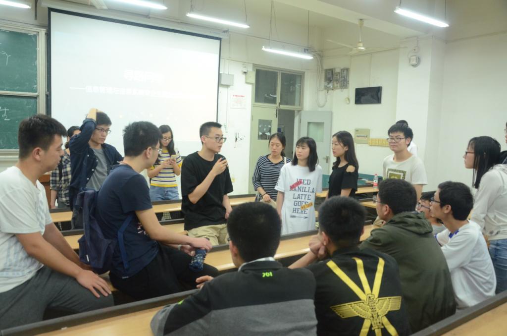 (通讯员:谢双蔓,陈茗)5月6日晚6点,信息管理学院晚点名将全院学生按专业进行集中,打破传统的以年级为单位进行点名的方式,开展了“寻路问学”主题教育,以问题为导向,以系为单位,学院教师齐参与,将解决思想问题与解决生涯发展问题相结合,创新了晚点名主题教育。信息管理学院院长李玉海,分党委副书记杨青松,副院长卢新元,学院老师王光超,辅导员穆帆、范曜晖,校友田皓,各专业各领域优秀毕业生代表参加了此次主题教育。本次主题教育由信息管理与信息系统系主任董庆兴主持。