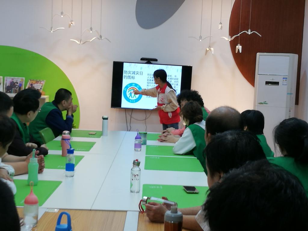 约40分钟的车程,志愿者们抵达了目的地。志愿者调试好设备,完成了准备工作后便开始教学。经询问,许多残疾人朋友知道十年前的5月12日爆发了汶川大地震。志愿者说:“在自然灾害突降时人类显得特别脆弱,这也警醒我们需提高对突发事件的应变能力。汶川大地震的灾情牵动人心,自2009年起,每年5月12日被定为全国的防灾减灾日。”然后,志愿者为残疾人朋友介绍了防灾减灾日的图标构成元素和寓意,重点为残疾人朋友们讲解了地震、洪涝、台风、干旱等自然灾害的特点和应对举措,残疾人朋友们专心专心致志地听讲,积极与志愿者互动。