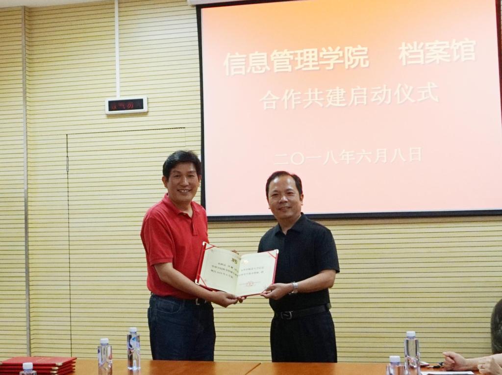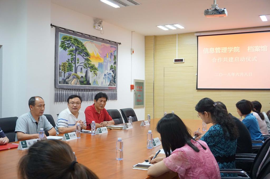 在2018年“6.9”国际档案日来临之际,信息管理学院、档案馆于6月8日启动合作共建活动,夏立新副校长出席仪式,信息管理学院刘宝卿书记、李玉海院长、易明教授和7名学生代表,档案馆付强馆长、艾咏芳副馆长和8名老师参加仪式。