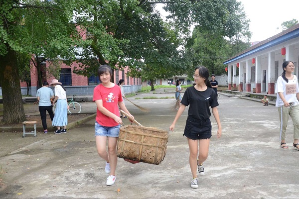 信息管理学院追光实践队的暑期社会实践已渐渐接近尾声,在此期间,队员们食宿都是由羊楼洞村的民宿提供,可口美味的饭菜与干净整洁的住宿环境为大家的暑期实践工作开展提供了基础保障。为了感谢民宿主人对大家实践工作的支持,7月12日下午,实践队全体队员自发为民宿主人打扫农庄庄园。