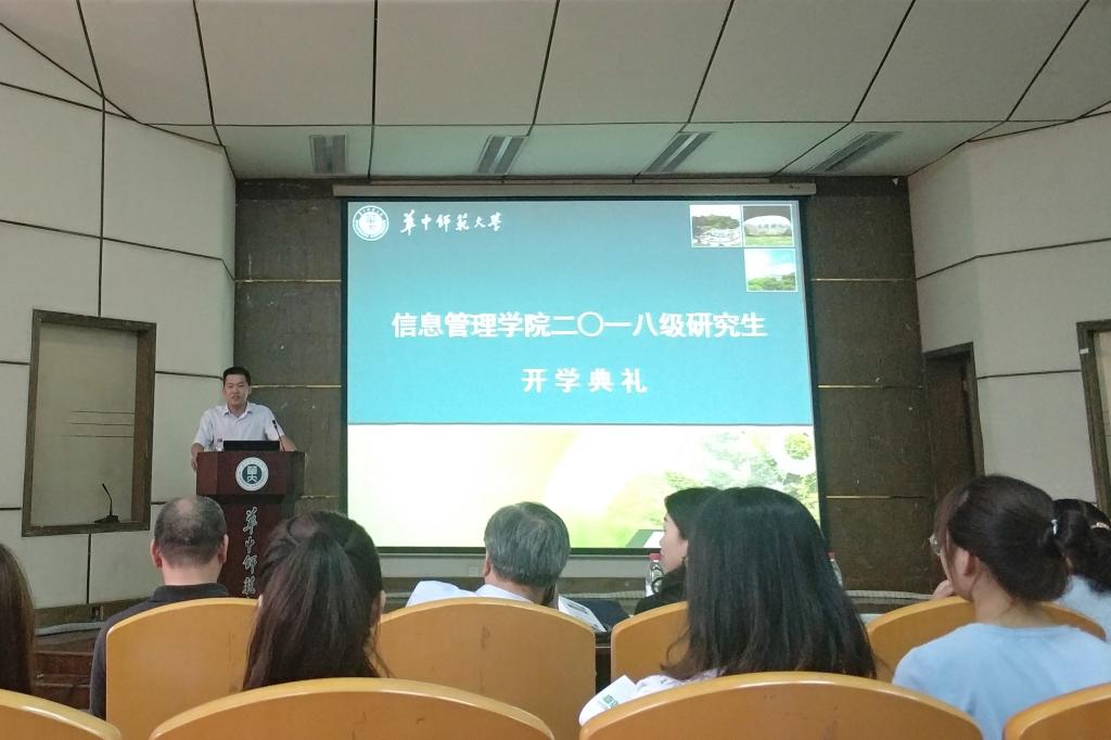 (通讯员杜丽君)为迎接信息管理学院硕博新生,9月7号下午2点,由曹高辉副院长主持的信息管理学院硕博新生开学典礼在9号楼报告厅拉开帷幕。出席开学典礼的有学院党委书记刘宝卿、湖北省科技信息研究院代表,以及信管学院各位教授、辅导员老师和研会代表,对2018级硕博新生送上了祝福和教诲。