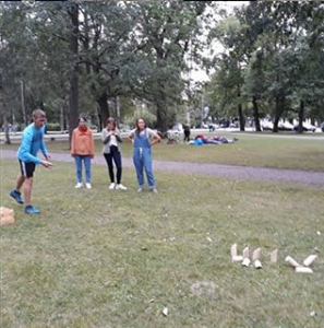 2018年8月14日下午4点半,我院学生积极参与了本次夏令营的第一次社会活动。该活动由Liisa等人带领四十多位国际学生们一同来到图尔库最受欢迎的城市公园---Kupittaa Park,公园广阔的草坪非常适合从足球到槌球的各种户外球类活动,这里是当地足球队和国际米兰的主场。Liisa组织所有人围成一个圈,每个学生轮流说出自己的一个特点或喜好,有相同喜好的同学则向圈内走进一步。最有趣的是,在这个由四十多位分别来自法国、英国、埃及、加拿大、中国、罗马尼亚、越南、俄罗斯等多个国家的同学围成的圈子里,永远可以找到与你有着相同爱好的人。有同学喜欢猫,有同学喜欢旅行,有同学喜欢音乐,每当圆圈变小时,同学们也在不知不觉地走进彼此、熟悉彼此。而让大家印象最为深刻的是,当一位国际学生说道“I love Chinese food”时,几乎每为同学都向前跨了一步。有同学感叹道,圈内的世界很多元,但却充满了相似、包容与开放,每个人都能在小舞台上展现自己并收获认同。在简单的了解之后,Liisa将国际学生们分为五组,每组都有图尔库应用科学大学的老师或学生带领大家玩当地有名的益智竞技类户外游戏“芬兰撞桩”,公园里充满了大家的欢声笑语,活动在一轮游戏后圆满结束。