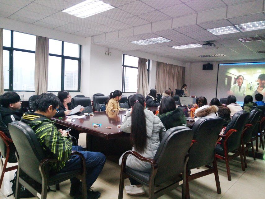 首先,刘雪纯同学分享了自己的素材——“干杯”MV并讲述了自身的患病经历。她说到,面对疾病和死亡时要持从容乐观的态度,要珍惜当下时光认真去生活,最后还表达了对同学们的祝愿。在场同学听完后都非常动容,会议室掌声如雷。
