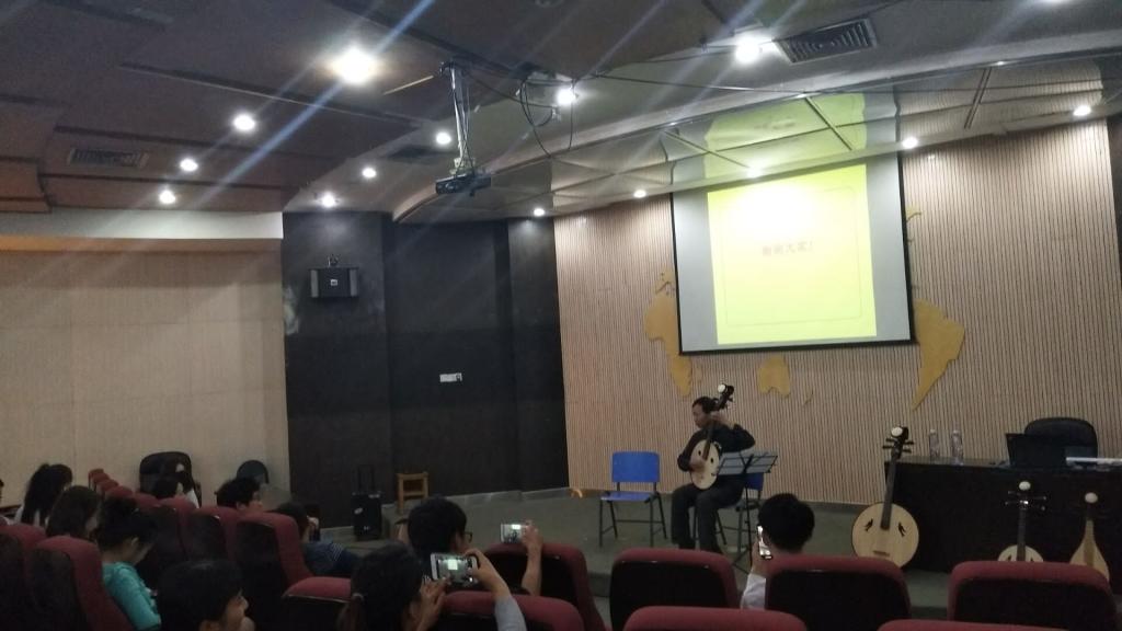 娄老师钟爱艺术,不仅对各种乐器颇有研究,还创办了阮艺协会,为培养同学们的兴趣爱好创造了良好的环境。在本次讲座中,娄老师从阮的起源、类型谈到阮的发展及目前出色的阮艺表演团体,使得同学们深刻了解了这个蕴涵浓郁历史背景并极具民族特色的小众乐器。娄老师还通过演奏让同学们深刻体会了各种阮乐器音色的区别,同学们受益匪浅。